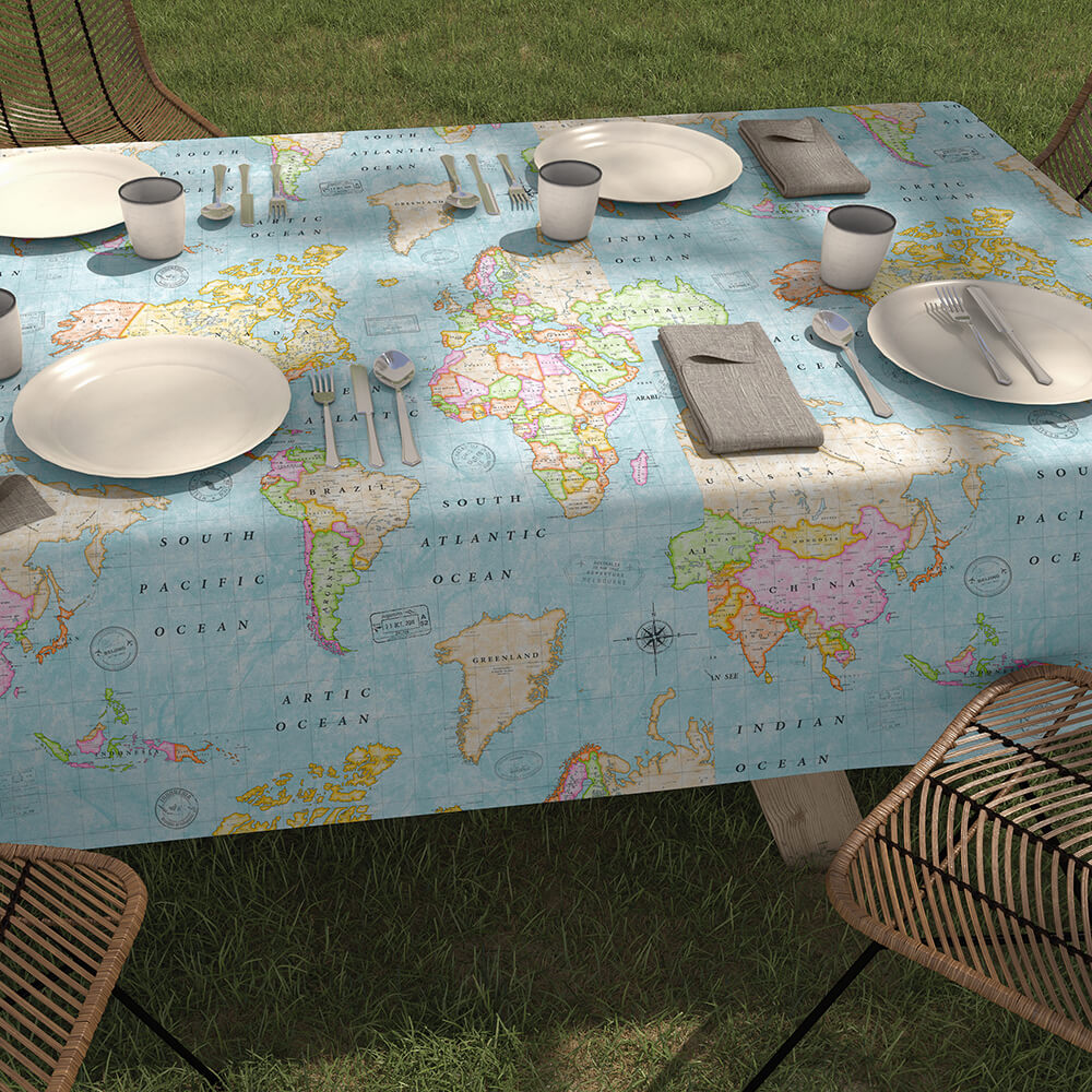 Tratamiento antimanchas para evitar que cualquier tipo de líquido traspase el tejido. Ideal para mesa de comedor, cocina y exterior. Tejido elegante a la vista, evitando el aspecto de los manteles plástificados.
